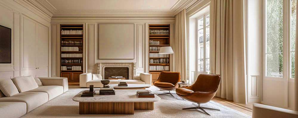To historia o 100 metrach kwadratowych, które stały się mostem między epokami – gdzie sztukaterie z czasów Ludwika XVI współgrają z industrialnym pochłaniaczem, a skórzane fotele z Mediolanu sąsiadują z lnianymi zasłonami tkanymi na berlińskich krosnach.